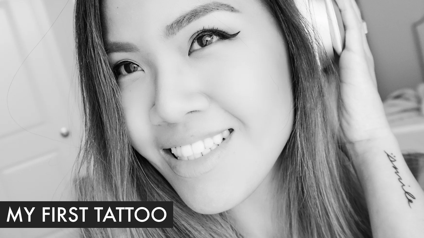 For months, I wrote variations of the word smile on every scrap paper that ended up on my desk, until I settled with this. No caps, just the simplicity & subtleness of lowercase cursive. The two dots over the "s" makes a smilie face, bringing lightness to a elusively dark meaning tattoo. And I must say, I love it. It was liberating to get it & it actually makes me smile every time that I look at my tattoo.